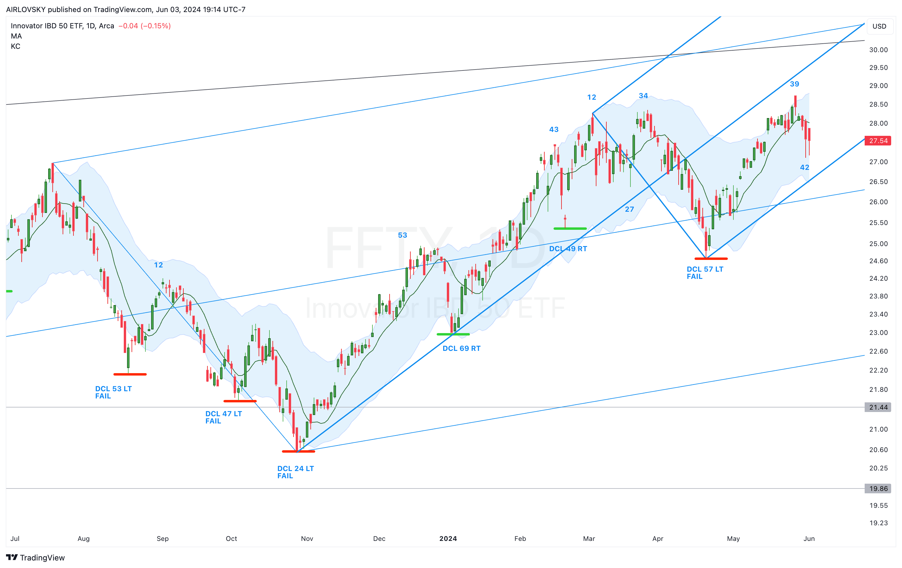 - First ICL Post-YCL: The first Intermediate Cycle Low after a YCL must hold strong. For instance, $FFTY’s ICL in April 2024 didn’t dip below its October 2023 low, which solidified the YCL confirmation.