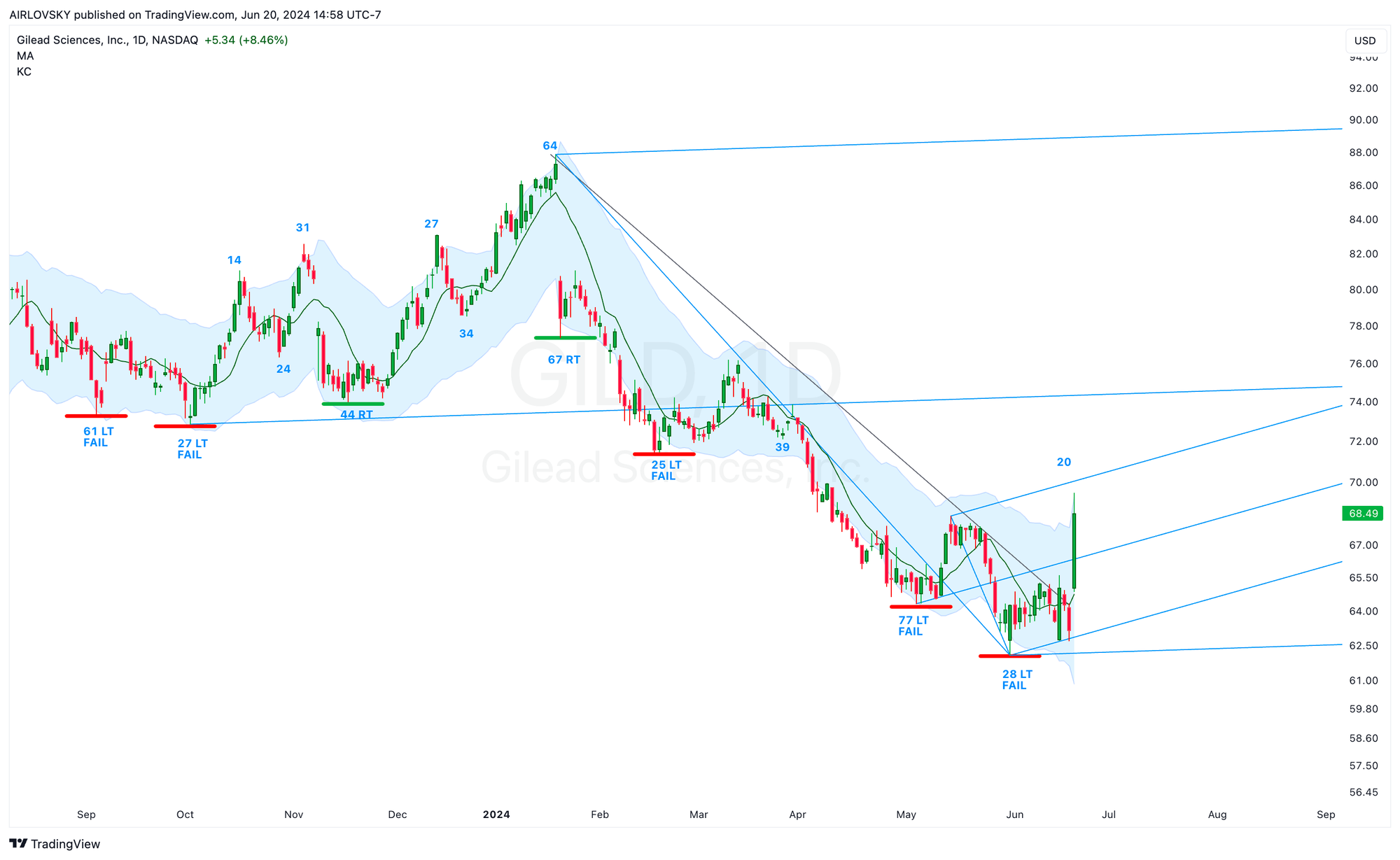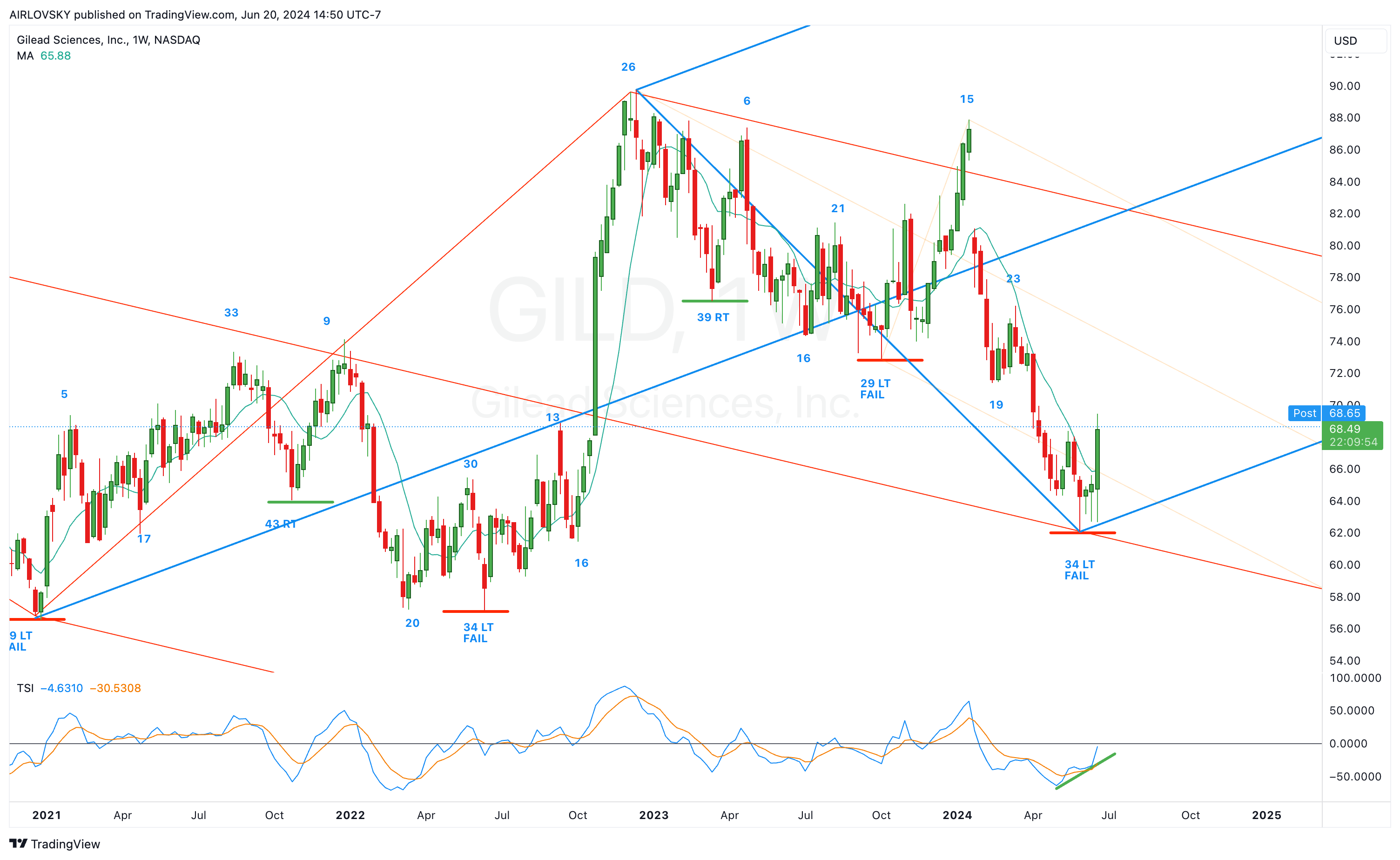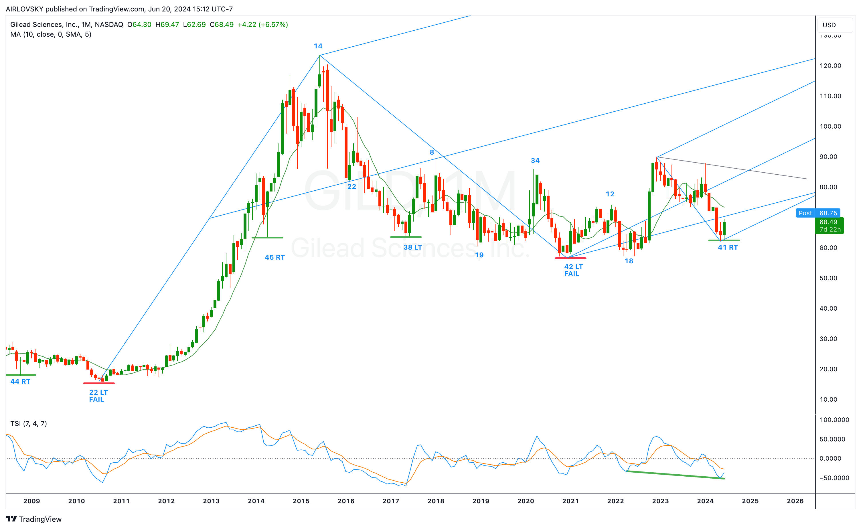 - Now with a swing low and a break above the declining trendline, $GILD is looking to close the week and confirm weekly cycle low.