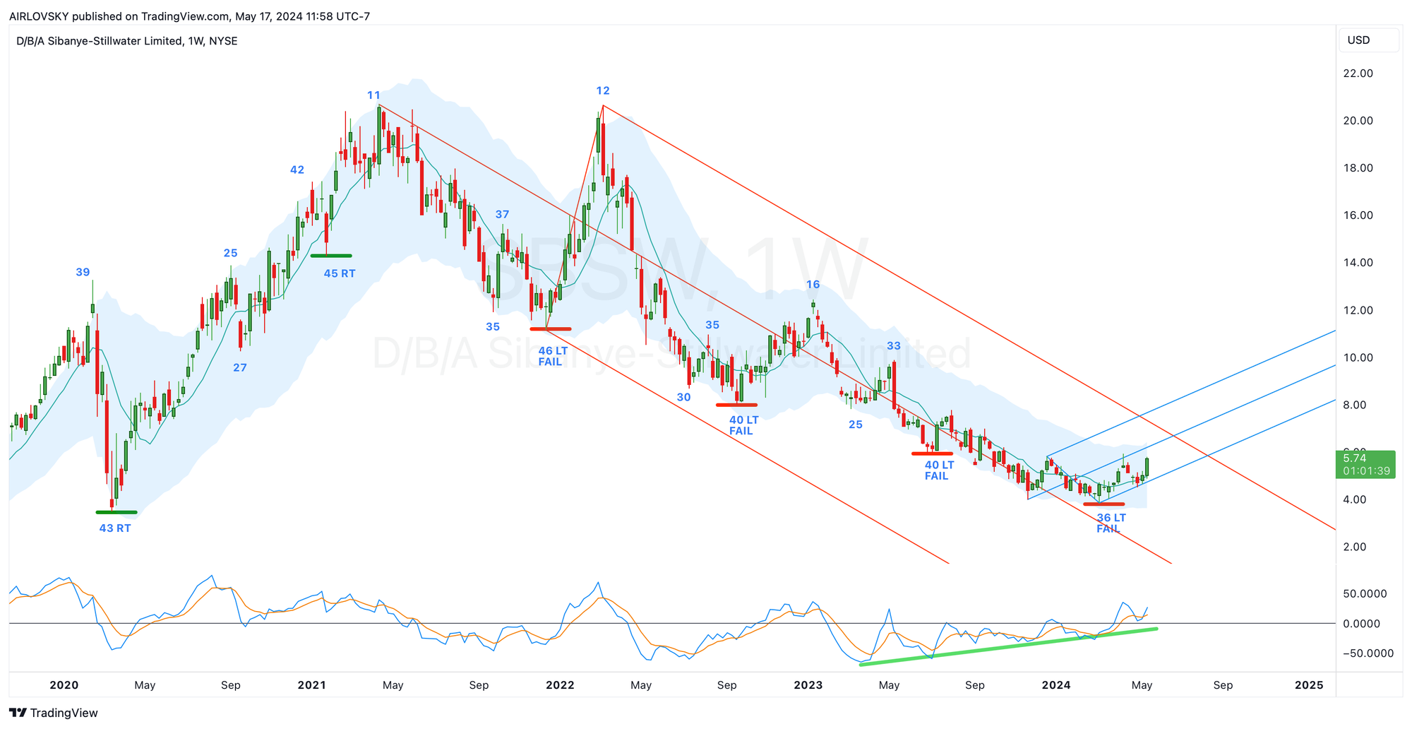 In March, we identified a potential cyclical bottom in $SBSW. To confirm the weekly cycle low, we monitored the following: