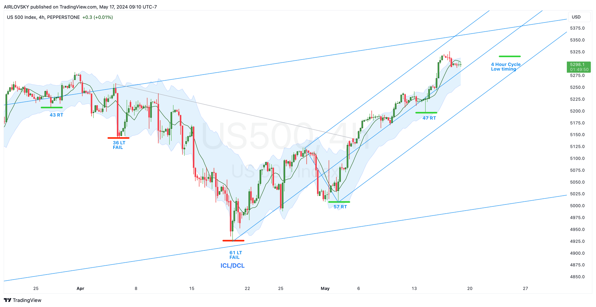 Covering 4 Hour Cycles for $US500, $XAUUSD, $BTC